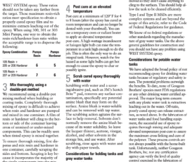 Our idea is to replace the stainless tanks with our own home-built West System plywood/epoxy tanks. We have 150gallons of tankage; if we had less I would have elected to use Ronco plastic tanks, but they don’t make ones near big enough and I didn’t want complicated plumbing stringing multiple tanks together. The watertanks are bolted to the hull in two places on the backside of the tank (each one), via a machine screw to fiberglass stringers. The tanks were installed in the boat and the settees and storage were built around them, so it is necessary to cut out access hatches through the bottom of the storage compartments behind the settee. We determined where to cut these access hatches by using a mirror and a yardstick to estimate the location of each stringer. I really really hate having to cut new holes in the boat, but in this case it truly was unavoidable. The tanks are not identically sized; the starboard tank is slightly smaller. We were able to take the starboard tank out the companionway–it was a very tight fit. After that sigh of relief, we were extremely dismayed to discover that the port tank is larger and definitely doesn’t fit. We went back and forth trying to decide whether we should tear about the companionway trim or cut up the tank. We weren’t sure we’d be able to get the tank out even if we ripped out all the trim, so we elected to cut the tank up down below. This proved to be an epic task, and that’s an understatement. The tanks are out of the boat. We gave one away to one of the guys that works in the marina workyard, the other was destroyed when we cut it in three pieces. We chose to build our own replacement tanks out of fiberglass, epoxy, and plywood. This may have been a poor decision, but there are no take-backs at this point. We bought wood and epoxy and fiberglass and drove it to mexico, where we spent more money on fiberglass and epoxy (way overpriced). Then we didn’t finish the job and decided to truck the boat up to SF, so it was all a waste of time and money. We’ll be building the tanks up here in SF, as we should have from the beginning. Hindsight is 20-20. I am using the West System epoxy method, and I’m going to follow their special additional instructions (images below) regarding potable water tanks. These special instructions consist of a slight lack of hardener, thorough mixing habits, and a period of elevated temperature for post-curing. I anticipate stage II to take place in May.