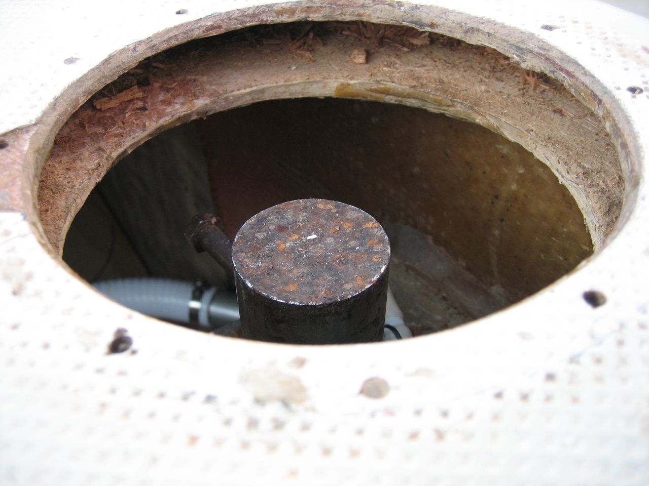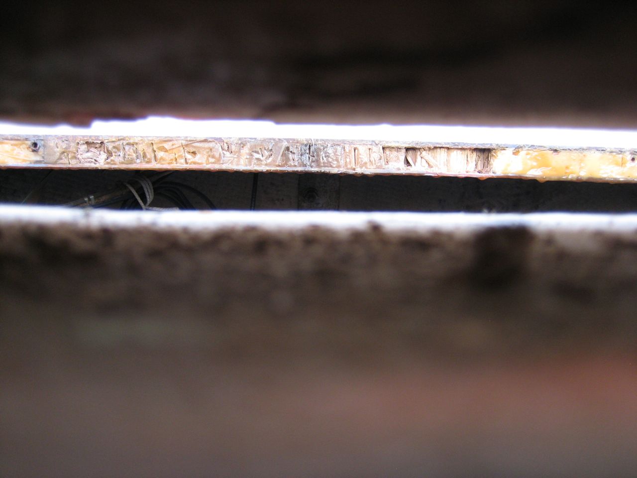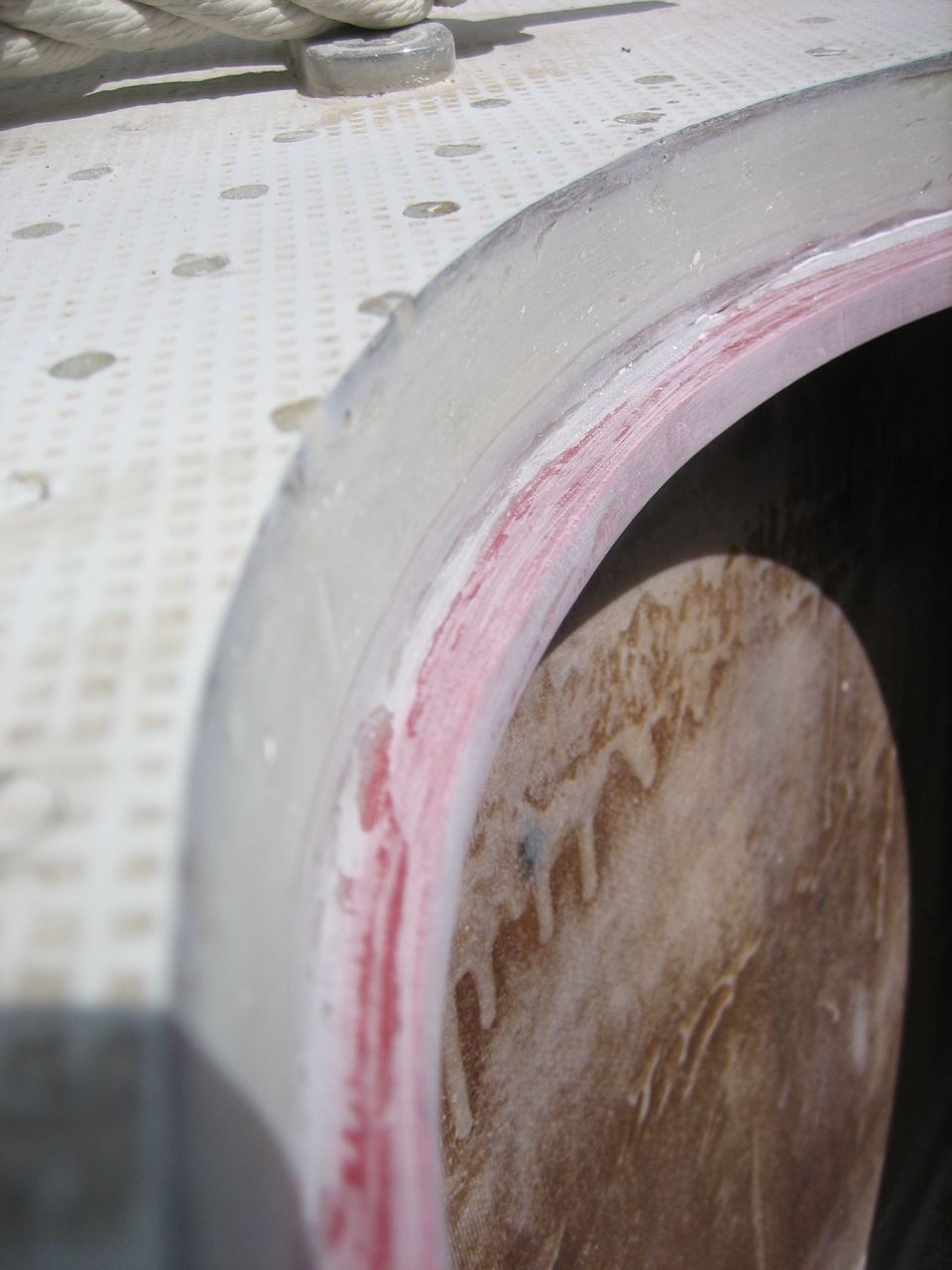 When we drilled and cored the new holes it was easy to look at the fresh, wonderful balsa core and see that the track hadn’t been leaking (the port track, on the other hand, showed some minor signs of leaking). So we were wrong about the source of the leak and now we have to pull something else off the deck.