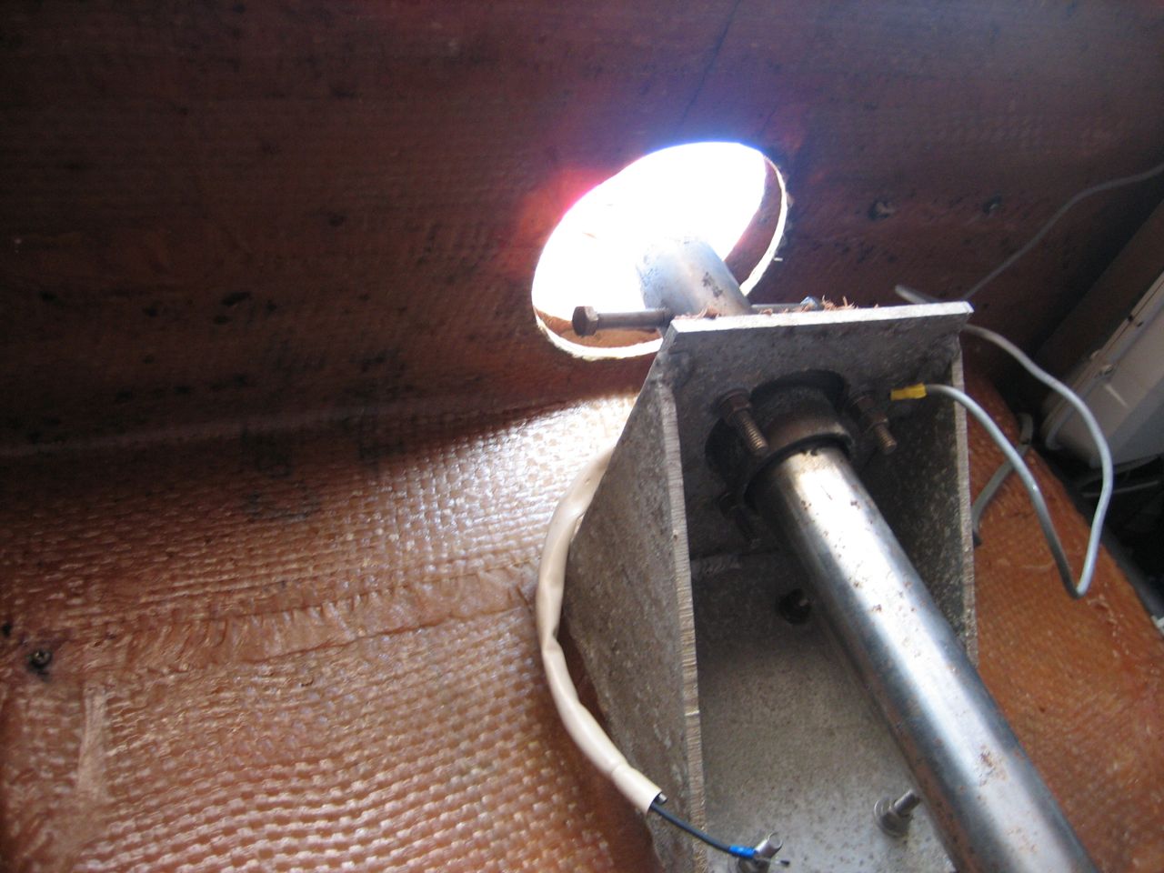 Some short lengths of ductwork were missing: the piece through the wet locker and the piece underneath the nav seat. I replaced the one in the wet locker with the common, expanding type available at home depot. I wasn’t excited about the durability of it, but I wrapped it with a ton of foam insulation and then taped it all over with the metal duct tape to strengthen it. The section underneath the seat had to be stronger (tools get dumped on it) so I found a double wall scrap piece from Urban Ore down the street from us (a great source for obtaining other people’s garbage). The fitting that joined the duct to the vent was missing, so I fabricated one out of a section of single wall metal duct that was flexible enough to bend into the shape I wanted with pliers (and extensive shaping with the cutoff blade).