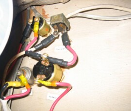 I was working on the electrical system with the main battery switch turned off, and was astounded to find that the lights (and everything else on the boat) still turned on. I realized that the Freedom Inverter, plugged into shore power, was acting as a transformer to supply 12V to the boat even without the batteries in the system (the inverter is on the downstream side of main switch). I considered moving the inverter to the upstream side of the main switch, but then I realized that I wouldn’t be able to switch the inverter out of the system–it would be constantly connected to the batteries. The same reasoning holds true for other sources of current as well, including the alternator, the PV panels, and the wind generator. I do not want those things constantly connected, without a quick way (a switch) to remove them from the system when leaving the boat.
