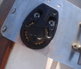 The old mainsheet setup wasn’t good enough for me. There wasn’t enough puchase power to sheet and ease the main by hand, without the use of a winch. I want to be able to do it much more quickly than the winch setup will allow. Also, the old blocks were worn out (high friction).