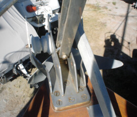 The old installation used two bolts through the hull; the head of the bolt was on the inside of the hull, lock washer and nut on the outside. The electrical terminal was under the head of the bolt inside the hull. This meant that the electrical terminals could not be removed, cleaned, or replaced without pulling the boat out of the water (which explains why the old terminal was rendered worthless by corrosion). Moreover, the bolts used were stainless, which is not very conductive. We purchased extra long silicon bronze bolts, cut off the heads of the bolts, and used doubled nuts with lock washers both on the inside and outside of the hull. This way the terminal can be accessed and replaced without affecting the zinc installation.