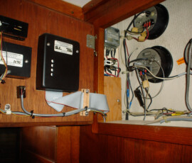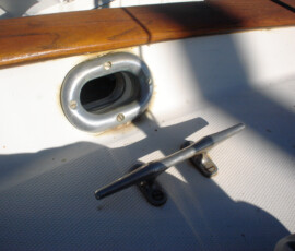 We added proper backing plates to every below waterline through-hull. The backing plates are 3/8″ marine grade plywood, saturated with penetrating epoxy to waterproof them.