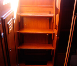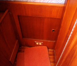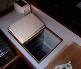 The old one had rotted away. We replaced it with epoxy saturated (Smith’s Pentrating Epoxy) marine grade plywood. Instead of screwing it to the fiberglass in the bilge, I through-bolted it.