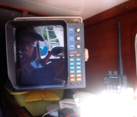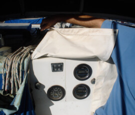 On the sea trial the shaft seal leaked slightly at an idle, and more so as the engine was brought up to operating speed. During the xmas work trip Jon tackled this job. Loosen the set screws, slide the collar up, figure out how to reach in there to clean it, push the collar back down, tighten, easy. The only tricky thing is that after many years, the rubber bellows loses it’s elasticity, so we were clueless as to how tight was tight enough. We just pushed the collar as tight as we could and locked it down. When we ran the boat in february, it didn’t leak.