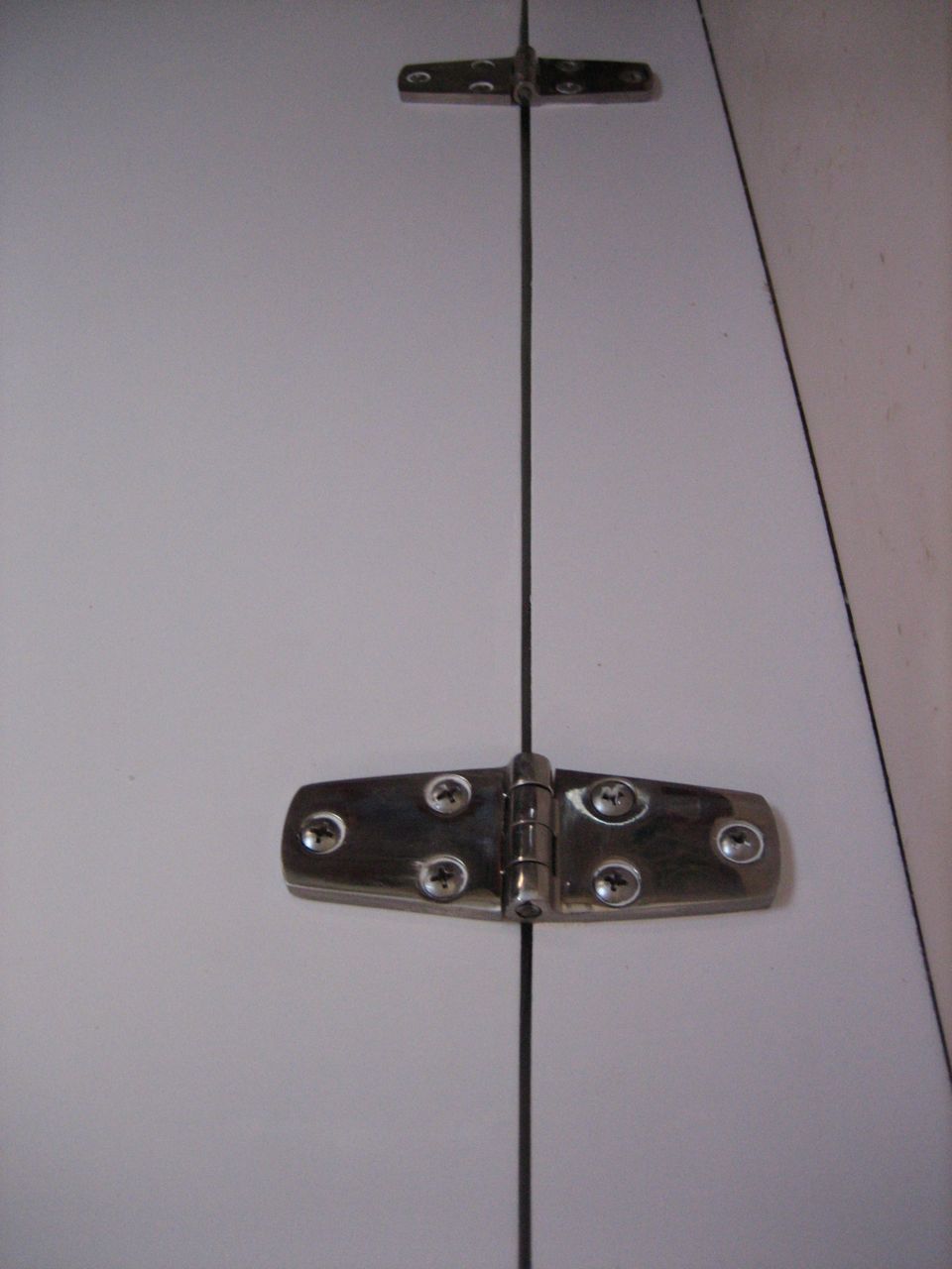 It was a challenging problem, to figure out how to build the boxes such that they would fit down in the icebox. At least one of the boxes I had to finish assembling inside the icebox–so that one will never come out without breaking it apart. I put all of the boxes on rails–I used strips of starboard for this, nice and slick–so they slide back underneath the inaccessible sides of the box. And I was paranoid about the box banging on the evaporator plate and damaging it, so I put extra effort into making blocks and stops that would prevent the acrylic from touching the evaporator plate. After our first sail I discovered that I also needed to come up with a way to prevent the boxes from sliding back and forth while the boat rocked, so I used some cotter pins with keeper cords–works like a charm. All in all, a very successful project. No space is wasted and the system is easy to use. It took a damn long time, but what’s new.