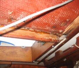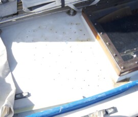 There was one remaining area of the cabintop just forward of the hatch over the galley that was delaminated when we bought the boat, and never got around to fixing it. My sense was that the delam was not due to water penetration, but rather just a spot where the deck came unglued from the core, and that’s why it wasn’t a top priority on my list.