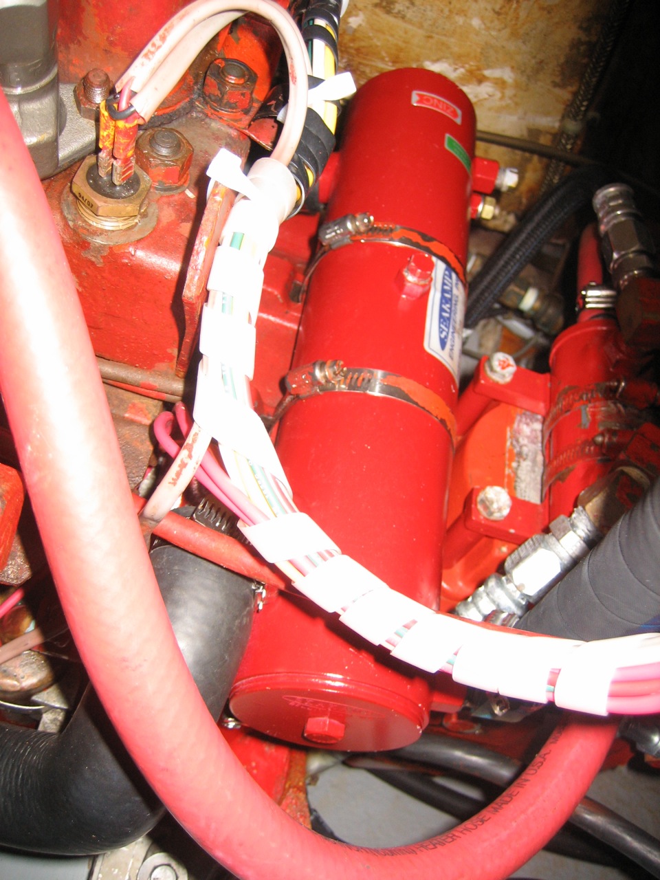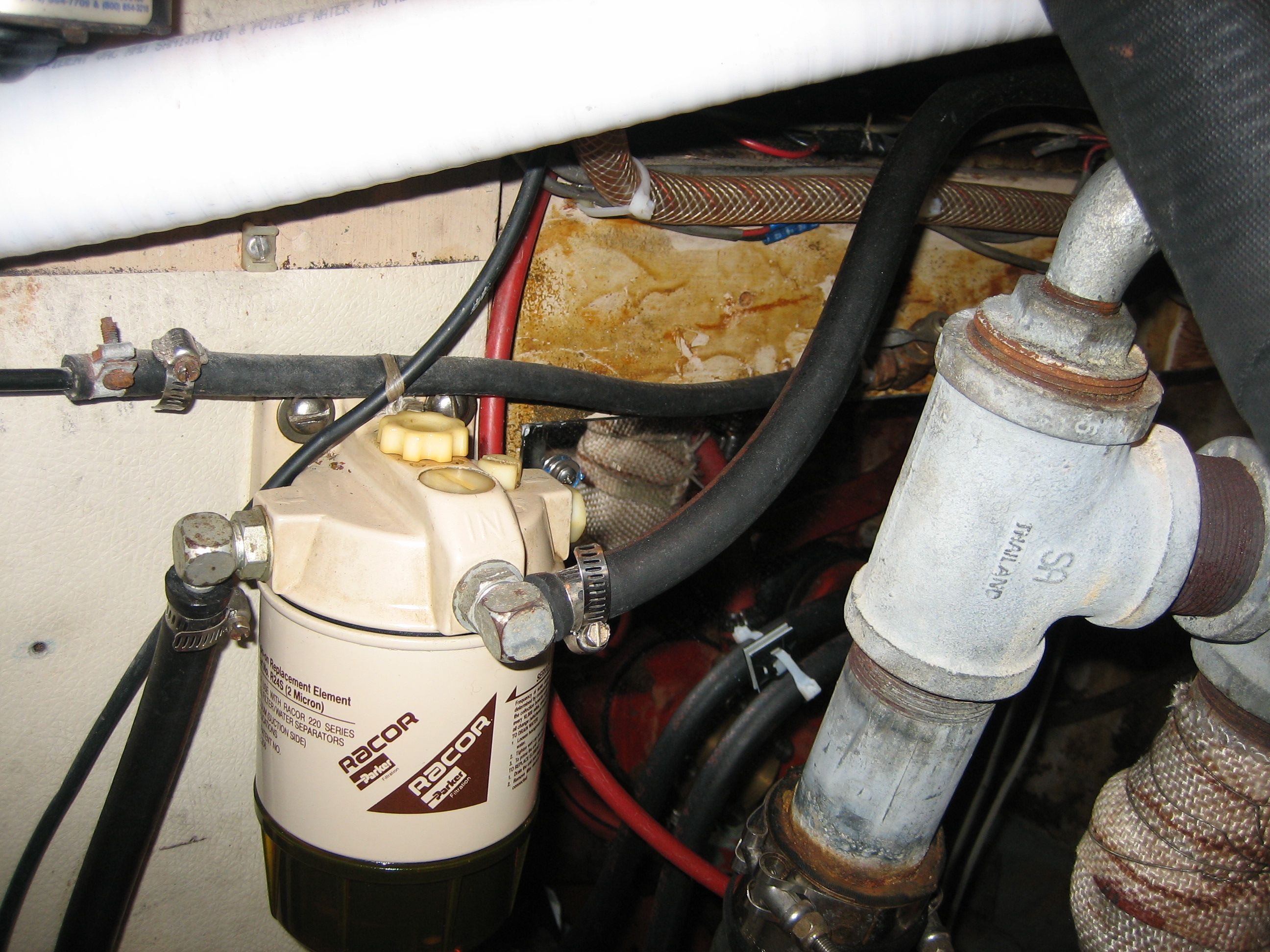 I also replaced the shitty plastic bleed valve on one of our primary fuel filters with a real metal screw. Fuel used to almost continually ooze from this bleed valve. It no longer does. This was not the entire problem, though may have been contributing to it.