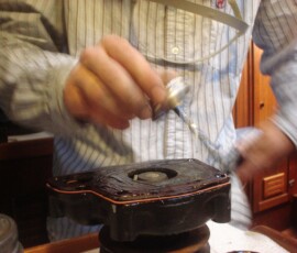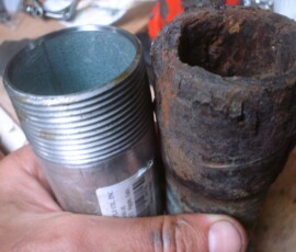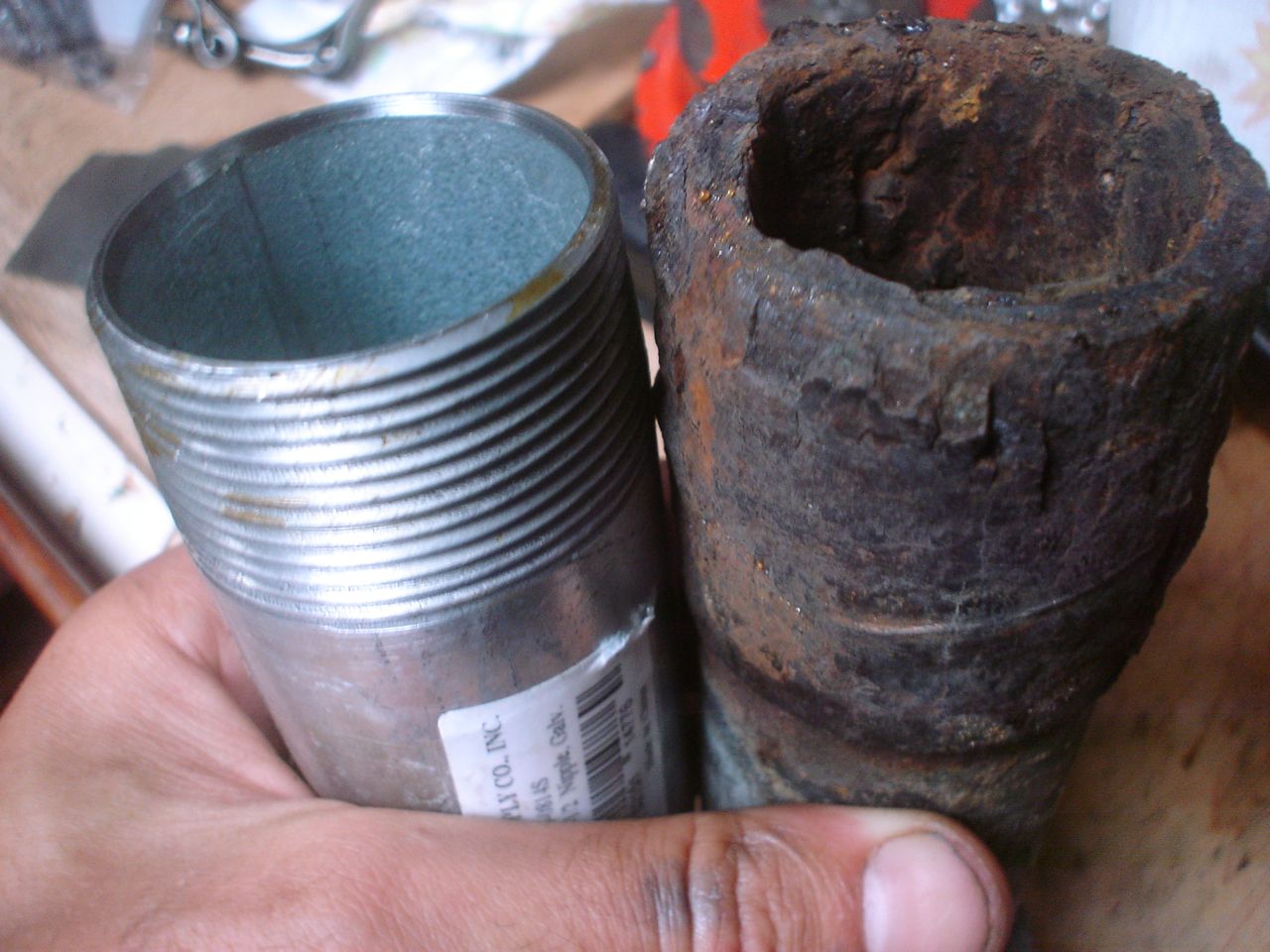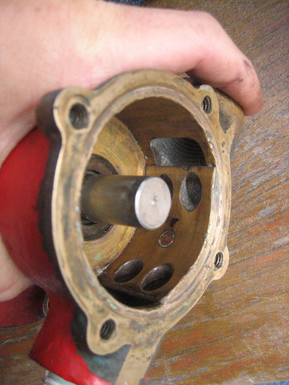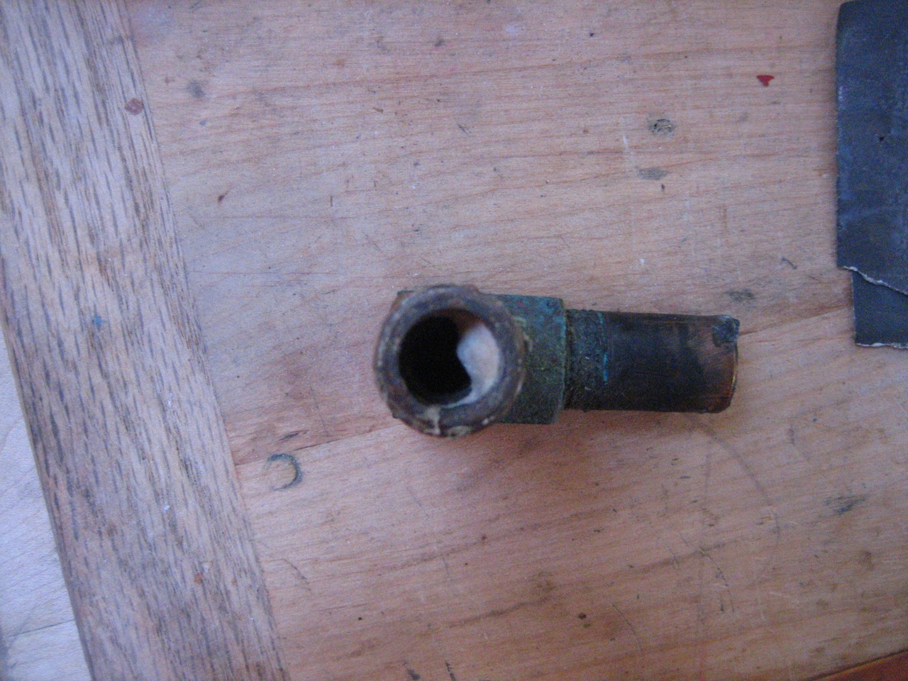 The fuel line from the injector pump to the injector was obviously getting stressed with all the torquing. So eventually I had to take the injector line off at the fuel injector. This also involved taking the fuel return line off and pulling out the injector from the engine with fuel line still dangling on it. With the line and injector off the engine and sitting nicely on a cutting board I was able to attach a vice grip and a wrench, add a pipe to each handle to lengthen the leverage and yard with all my might on the injector nut. It finally loosened. I screamed in satisfaction.