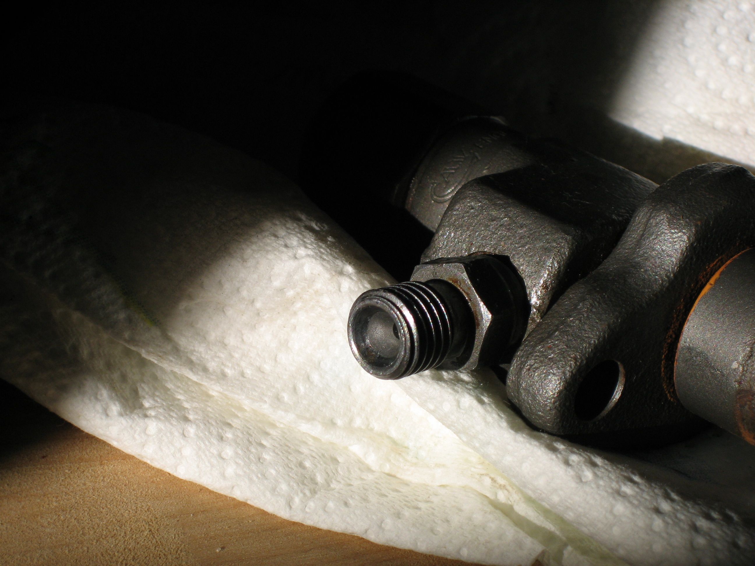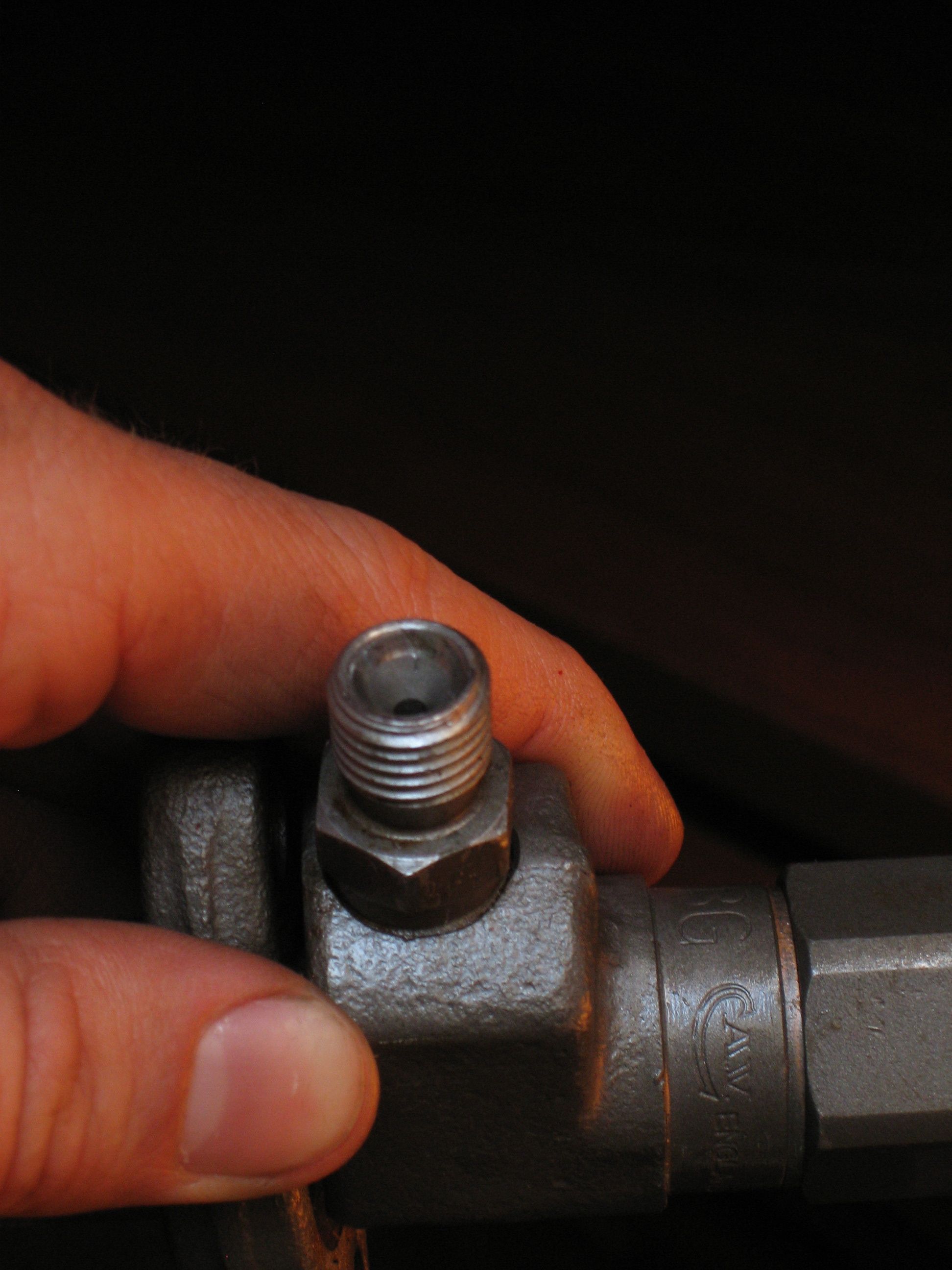 The problem that I caused was that when trying to crack open the injector nuts to bleed air out of the injector lines, instead of the injector nut turning open, the injector adapter loosened. I subsequently couldn’t get the injector adapter to retighten. I also couldn’t get the injector nut to loosen.