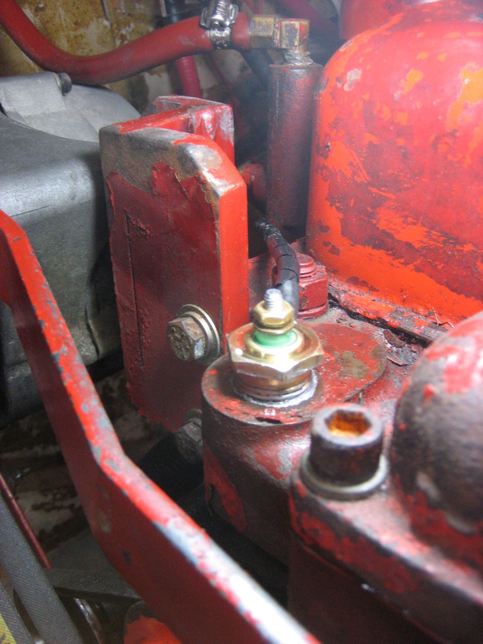 The Perkins dealer in Bundaberg informed us after a day of calling around that there is no Perkins 4108 injector nut in all of Australia, but the dealer was able to pull one from another engine that fit.