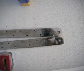 I used new bolts/nuts/lockwashers on the chainplates, stainless of course, and bedded them onto the side of the knees with a light layer of silicon to prevent water from wicking into that joint to corrode them (Pete’s suggestion).