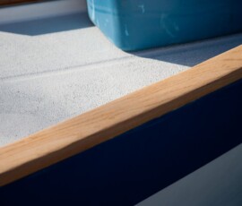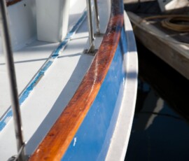 . . . including dorade boxes, the hatch surrounds, cockpit coaming, and the caprail. Jonny did this job. I wish I had more pictures of the finished result, somehow forgot about that one.