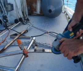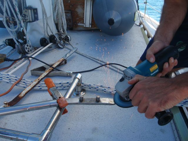 So a week later while sailing along at 2.5 knots on completely flat seas, I pulled out the grinder and took off enough so that it fit.