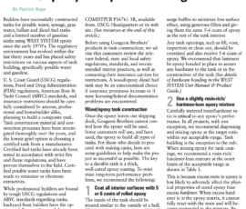 The tanks are out of the boat. We gave one away to one of the guys that works in the marina workyard, the other was destroyed when we cut it in three pieces. We chose to build our own replacement tanks out of fiberglass, epoxy, and plywood. This may have been a poor decision, but there are no take-backs at this point. We bought wood and epoxy and fiberglass and drove it to mexico, where we spent more money on fiberglass and epoxy (way overpriced). Then we didn’t finish the job and decided to truck the boat up to SF, so it was all a waste of time and money. We’ll be building the tanks up here in SF, as we should have from the beginning. Hindsight is 20-20. I am using the West System epoxy method, and I’m going to follow their special additional instructions (images below) regarding potable water tanks. These special instructions consist of a slight lack of hardener, thorough mixing habits, and a period of elevated temperature for post-curing. I anticipate stage II to take place in May.