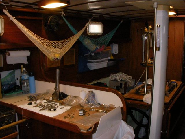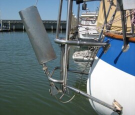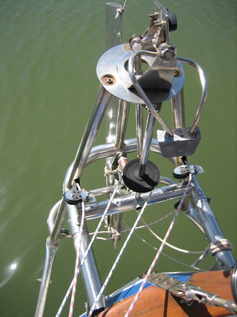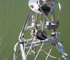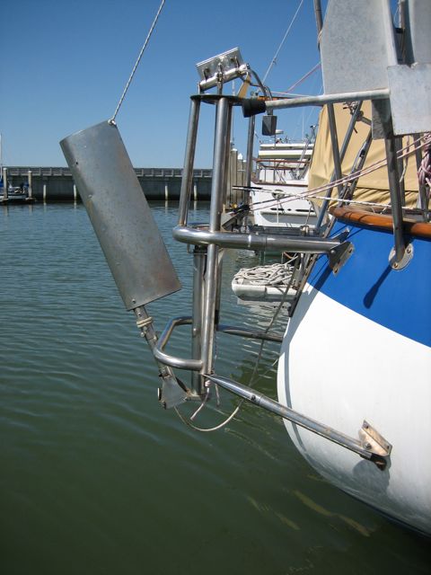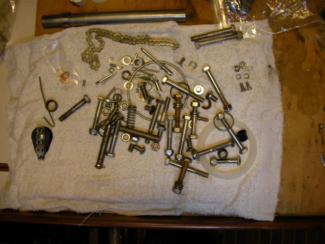 Boy was this a task. It was vintage 1989, and it was in tatters. One of the supports broke off under my weight one day, nearly dumped me in the drink. The chain broke off in my hand. Then we tried to take it all apart, and half a dozen bolts and things sheared off. Some of the tubing had rotted (I didn’t even know 304 stainless could rot, but that’s sure what this looked like.
