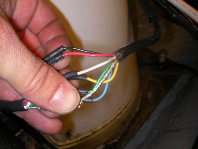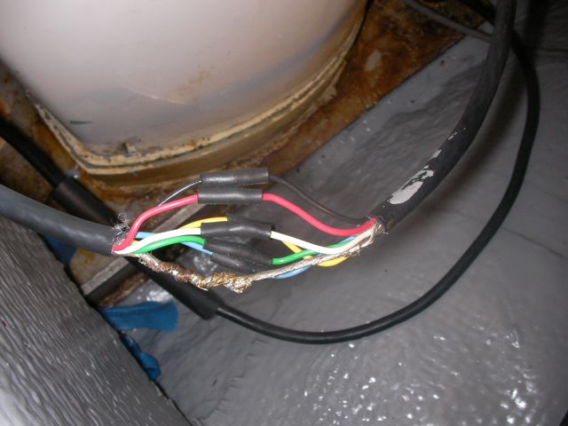 I redid all the connections in the bilge and some of the wires that run the length of the mast. The old connections in the bilge were wet and soggy when I unwrapped the ancient electrical tape that was “waterproofing” them. I soldered each of the wires directly (i.e. direct splice, no butt connector), put a heat shrink over each of the individual connections, then put a large heat shrink over the whole group.