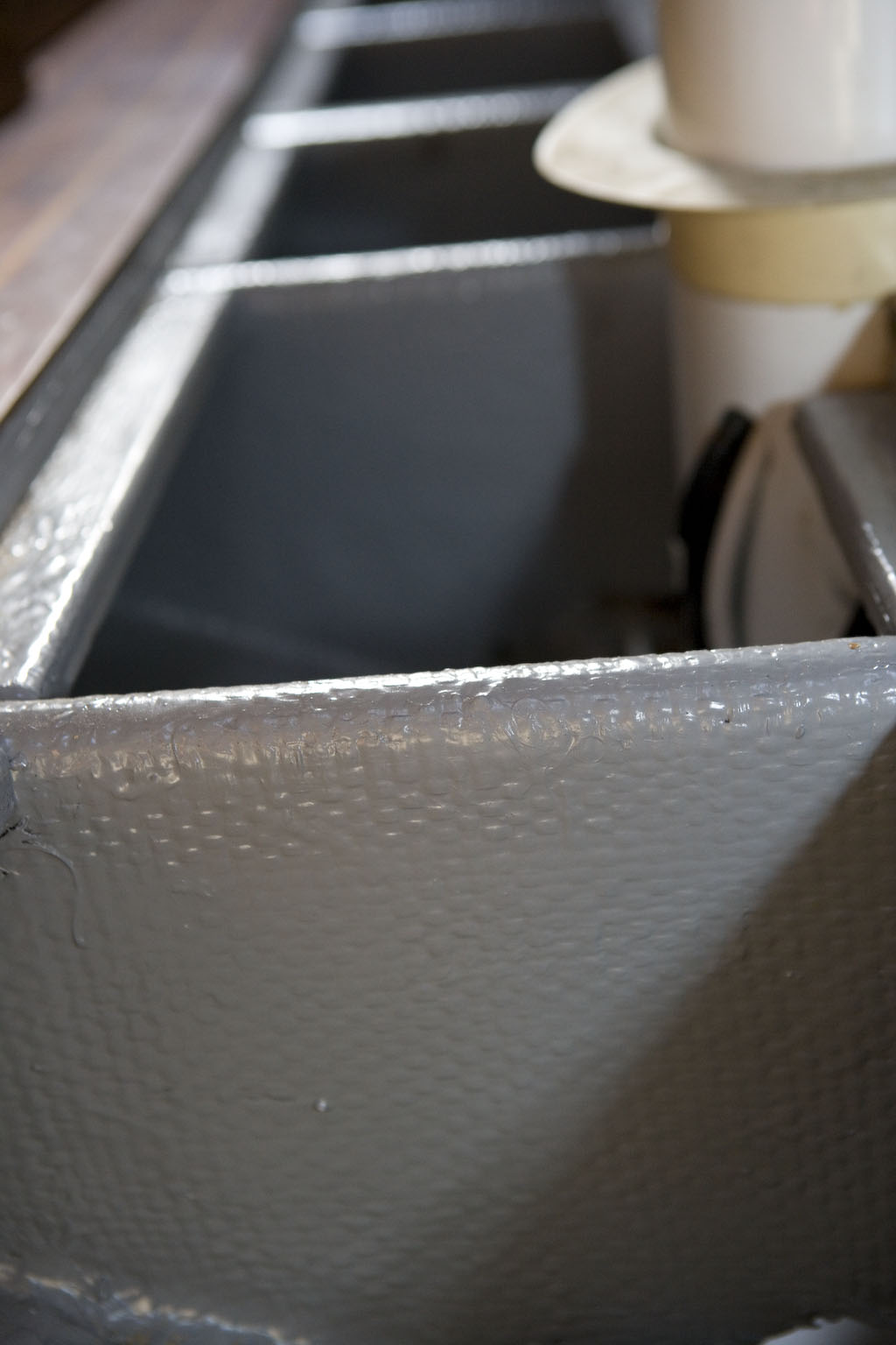 Finally, all three of us spent most of a day painting the bilge with a Sherwin-Williams “Seaguard” two-part epoxy paint. The stuff is thick as hell, and I hope that it will stick forever and ever and never flake off. The fumes were potent and we probably took a year off our lives by breathing it in such closed quarters.