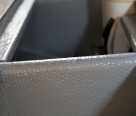First, we chipped all the resin out of the bilge. When the boat was built in ’78 the factory poured a ton of resin into the bilge to smooth it and seal it and even it out. This was a well-intentioned but ultimately poor decision. Over the 30 years since, the resin had cracked and come unbonded from the underlying fiberglass in many places, allowing water (and more recently, our leaking diesel fuel) to penetrate underneath and hang out, doing god knows what to our keelbolts and other bilge paraphernalia. Anyway, it was nasty and not cool, and we decided to fix it. It took about 50 hours of labor, split between all of us, to chip out the resin chunks and then chip it down relatively smooth for painting purposes.