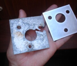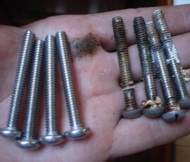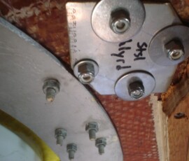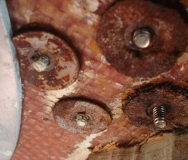 We’re discovering that many things installed through the deck are sans backing plates. The dodger was just screwed in, which in my opinion is not solid enough for how much force that dodger experiences. The staysail halyard block was backed with washers, which has rusted into powder because no sealant was used on deck. The bow pulpit backing plates were aluminum, which had so reacted with the stainless bolts in the salty environment of the anchor locker that they had corroded clear in half. We made custom 316 stainless plates for each application. In each case we also cored out the deck, filled the cavity with thickened epoxy, and redrilled for the bolts. In short, we did it the way we were supposed to in order to insure that water never permeates to rot out our cored deck. I’m willing to guess we’ll have many more of these to do–probably every time we open up a new ceiling panel. Much thanks to John Ryan for providing the stainless steel, making our bow pulpit plates for us, and giving us essential advice at every step of the way.